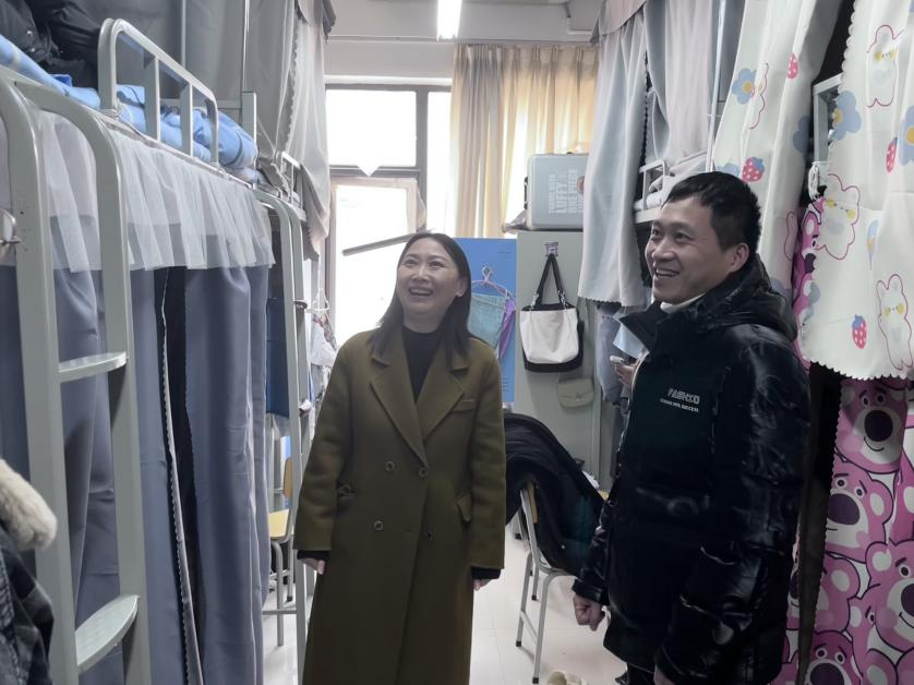 2月27日下午,幼儿教育公司党支部书记、经理李海英,党支部副书记丁鼎,副经理张广军带领公司辅导员陈艾嘉、冯凡和赵秀红等深入员工宿舍走访,为员工实时送去暖心关怀和问候,对各班的返校情况进行了详细的了解。并提醒同学们要注意宿舍防水和用电安全,保持良好的卫生习惯,合理调整好心态,以饱满的精神投入到接下来的学习生活中。