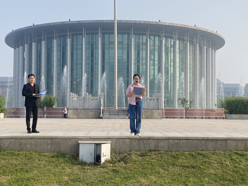 23级员工代表杨艺卓同学以“传承五四志,弘扬青春梦!”为题做国旗下的演讲,杨艺卓同学在演讲中提到,新时代中国青年要担当时代责任,并号召同学们要继承和发扬五四精神,争做堪当民族复兴重任的时代新人!