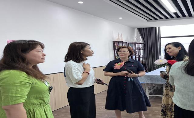 7月2日,韩国仁荷大学金彗羅教授、姜順美教授、姜善暻教授和金京玧教授,受邀来到太阳集团tyc9728校内实训中心参观,幼儿教育公司党支部书记、经理李海英,党支部副书记丁鼎,副经理崔颖,教研室主任李娜全程陪同。