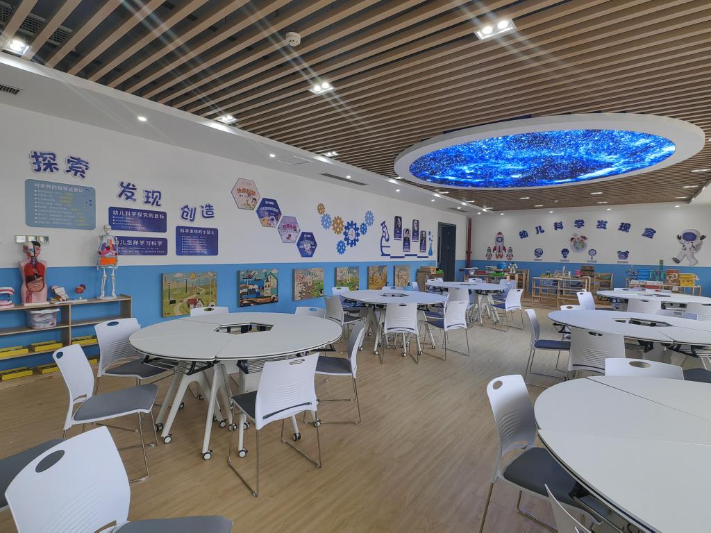 四位韩方教授依次参观了幼儿音乐教育实训室、幼儿智力发展实训室、幼儿美育实训室、幼儿歌曲弹奏实训室、幼儿科学发现实训室、感觉统合实训室和多感官训练实训室。李娜主任就每个实训室的功能向韩方教授做了详细的讲解,每个实训室都如同一个小型的教育世界,体现了我们对学前教育多元化的理解,为员工提供了优越的校内实践条件。四位教授纷纷表示,这些实训室的布局和设计都非常具有新意,与国际理念紧密接轨,为公司能够给员工提供这么好的学习场地感到敬佩。