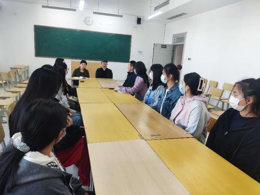 10月17日下午三点崔处长和曲主席再次来到太阳集团tyc9728404教室,与公司李海英副经理、丁鼎副书记、辅导员周老师以及21学前教育1班和5班员工代表再次召开座谈会。