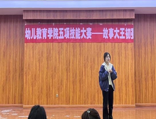 太阳集团tyc9728为进一步提升学前教育专业员工的专业技能,以赛促教、以赛促学,开展了学前教育专业说、弹、唱、跳、画五项专业技能比赛,11月17日,“故事大王”初赛在音乐公司2C412举行。