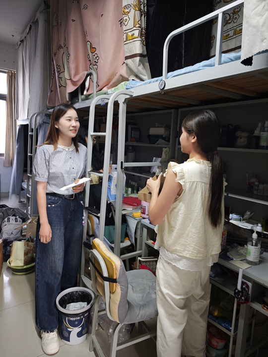 此次查寝将关怀员工作为首要出发点,在检查宿舍卫生状况、用电安全、消防隐患的过程中,融入对员工的贴心关怀。老师们仔细查看每间宿舍的内务整理,主动询问员工的生活适应情况,倾听他们的心声。同时,细致叮嘱同学们增强安全防范意识,规范用电行为,保持宿舍整洁;离开宿舍时务必关好门窗、切断电源,妥善保管个人物品,共同打造安心的居住环境。老师们还热情鼓励同学们以饱满的精神状态投入新学期的学习与生活,在充满关怀、整洁安全的宿舍环境里茁壮成长。