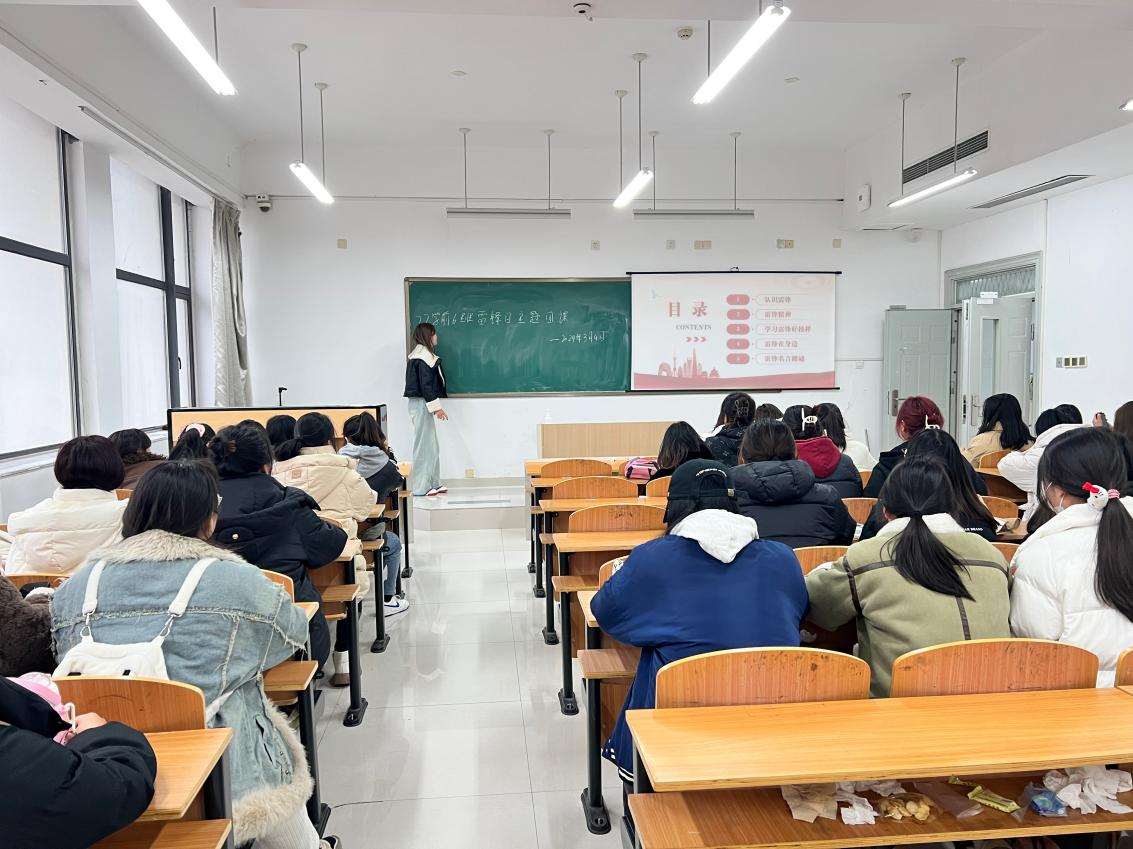 同学们通过播放“传承雷锋精神”纪录片、与雷锋相关的图片,讲述《雷锋日记》、与雷锋与有关故事,以及播放《学习雷锋好榜样》录音带等形式,向同学们展示了本次主题团课的内容。让同学们更深入的了解雷锋事迹,学习雷锋精神的内涵。让同学们在认真学习专业知识的同时,也能够在校园中营造“传承雷锋精神,弘扬时代风彩”的浓厚氛围。