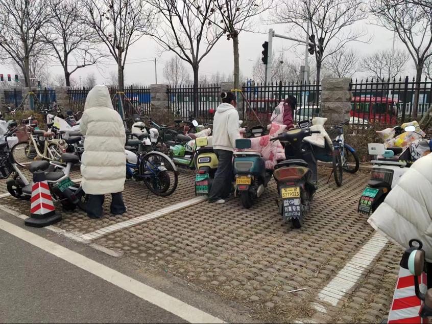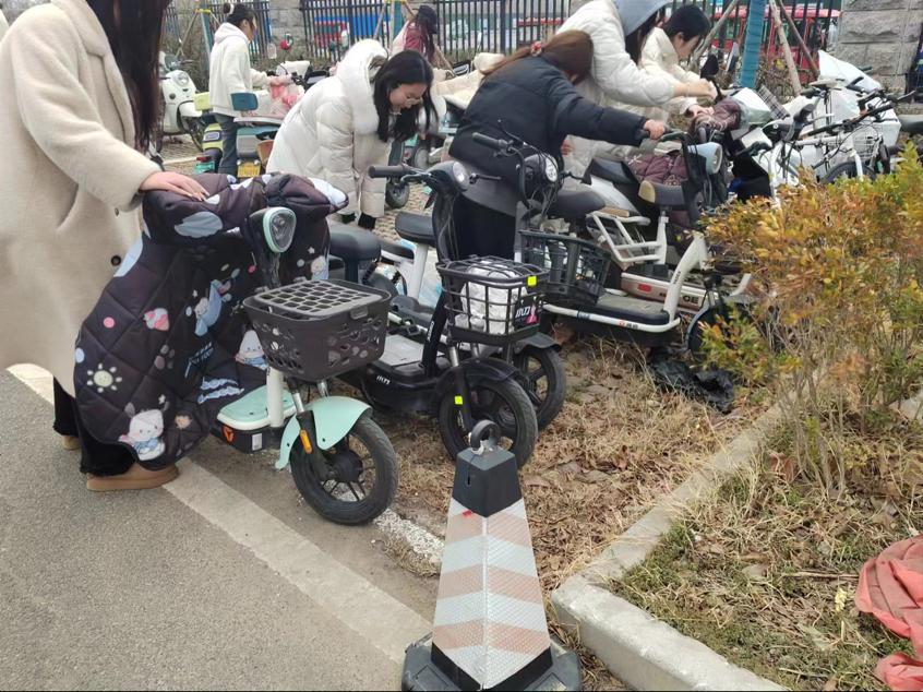 活动中,同学们将校园内乱停乱放的自行车、电动车摆放到规范停车区域,将东倒西歪的车辆摆放整齐。瑟瑟寒风,阻挡不了同学们乐于奉献的志愿精神,只见他们干劲十足,配合默契,在熙熙攘攘的校园内已然成为了一道亮丽的风景线。