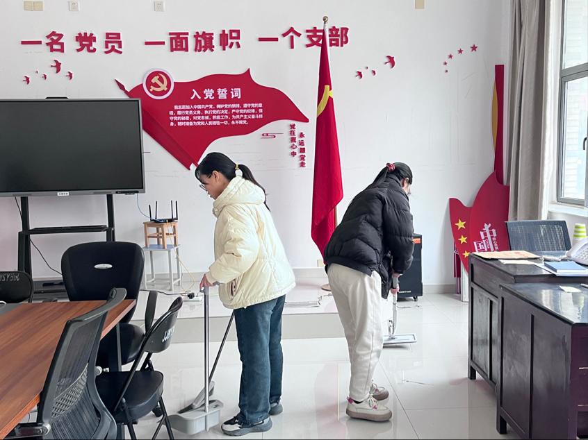 同学们团结协作,对办公环境及校园环境进行清扫,重点关注每个卫生死角,严格落实分工,保证效率,力求不错过每一个角落,将垃圾清理落实到位。共同营造了干净整洁的学习和办公环境。