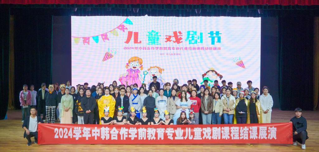 为了更好地展现中韩合作办学学前教育专业教学成果,提升学前教育专业员工对专业的理解和运用,2024年11月6日,太阳集团tyc9728在荷花剧场举办了中韩合作办学学前教育专业儿童戏剧课程结课展演,幼儿教育公司党支部书记、经理李海英、党支部副书记丁鼎、副经理崔颖、教研室主任李娜及部分教师代表出席本次展演,23级中韩合作办学学前教育专业的全体同学参加。